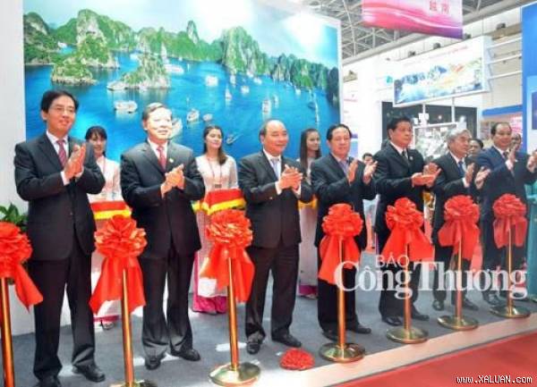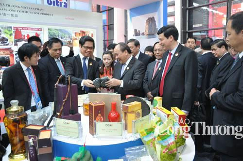 Đoàn đại biểu cấp cao Việt Nam do Phó Thủ tướng Nguyễn Xuân Phúc dẫn đầu cùng với Thứ trưởng Bộ Công Thương Nguyễn Cẩm Tú và lãnh đạo một số bộ, ngành, địa phương đã tới cắt băng khai mạc khu gian hàng thương mại của Việt Nam.